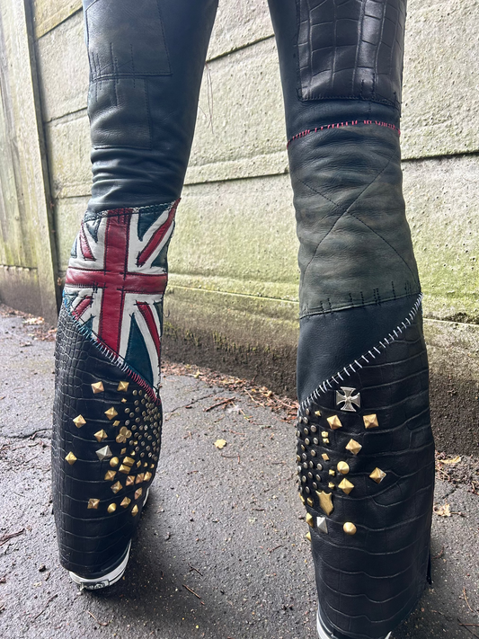 Patchwork leather trousers
